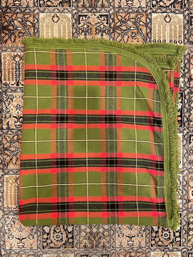 ビンテージのベッドスプレッドです。 店主案件となります。 とても上質で柔らかいコットン生地のタータンチェックのフリンジ付き。80年代のものですが、ダメージはないですが、やれ感は抜群の本当の良品。 また柄としても、実はありそうで本当にないのが、こういうパターンのベットスプレッド。かなりいろいろと重宝できるビンテージです。 間違いなくオススメです。 size 230×200cm