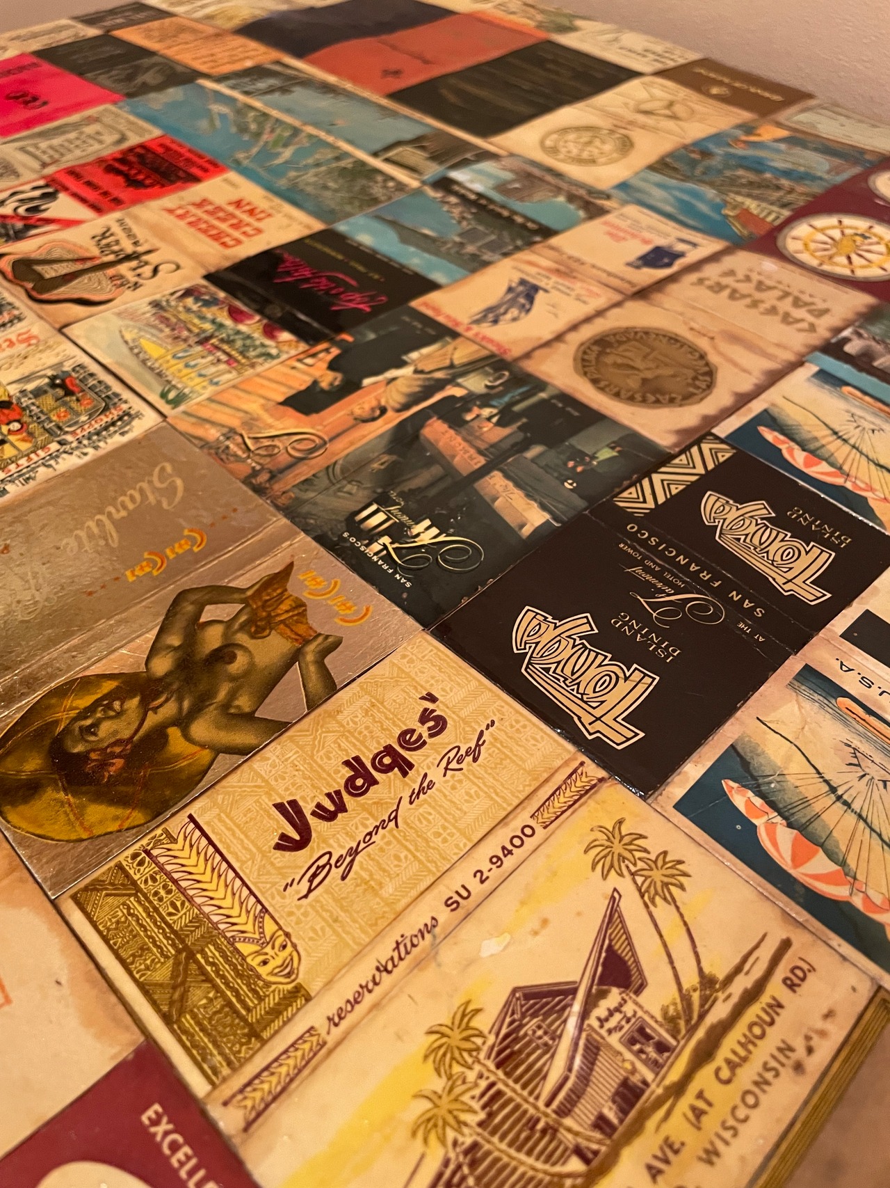テーブルトップは当時のマッチ箱でデザインされており雰囲気抜群。かなりカッコイイテーブルです。