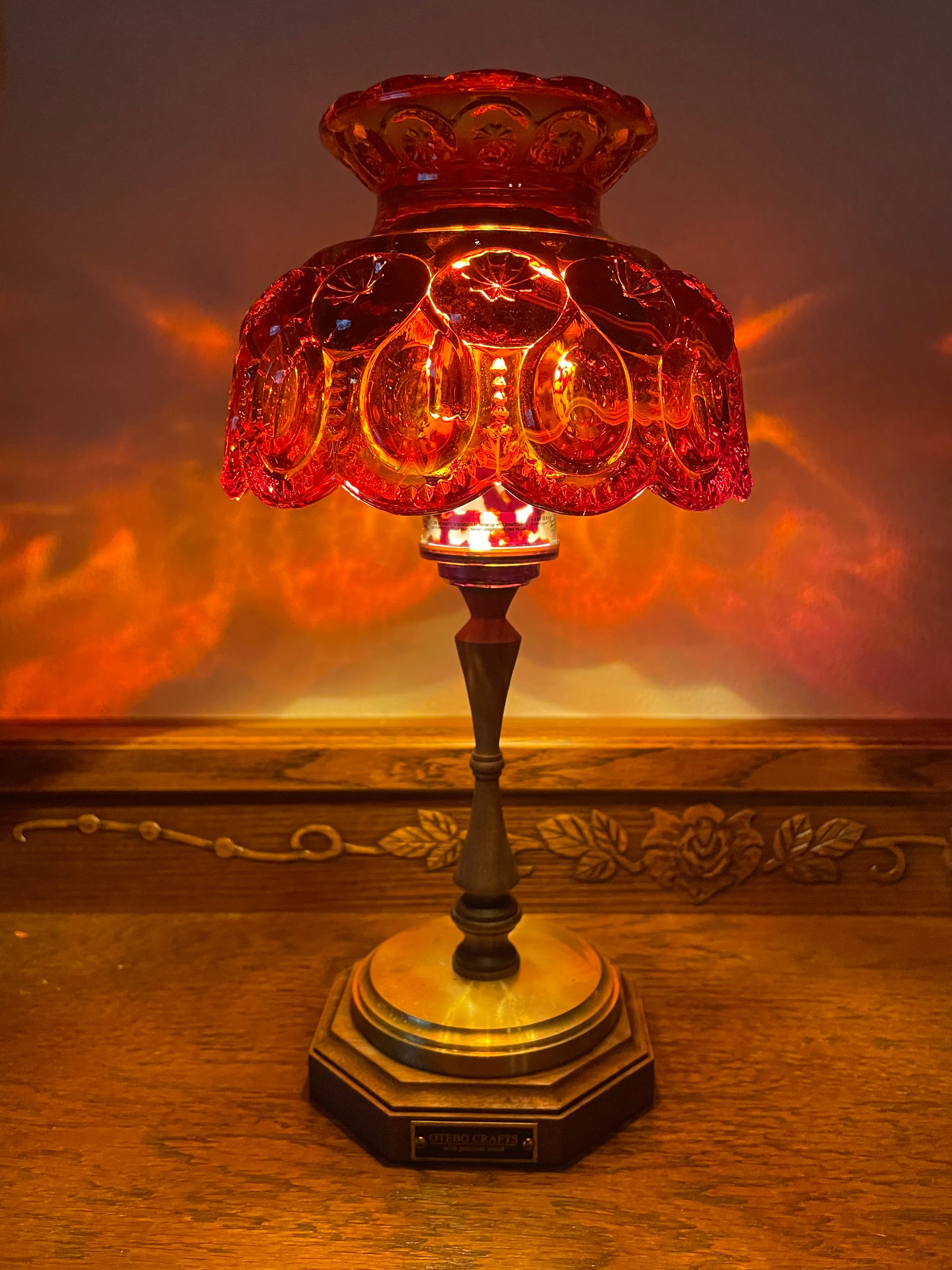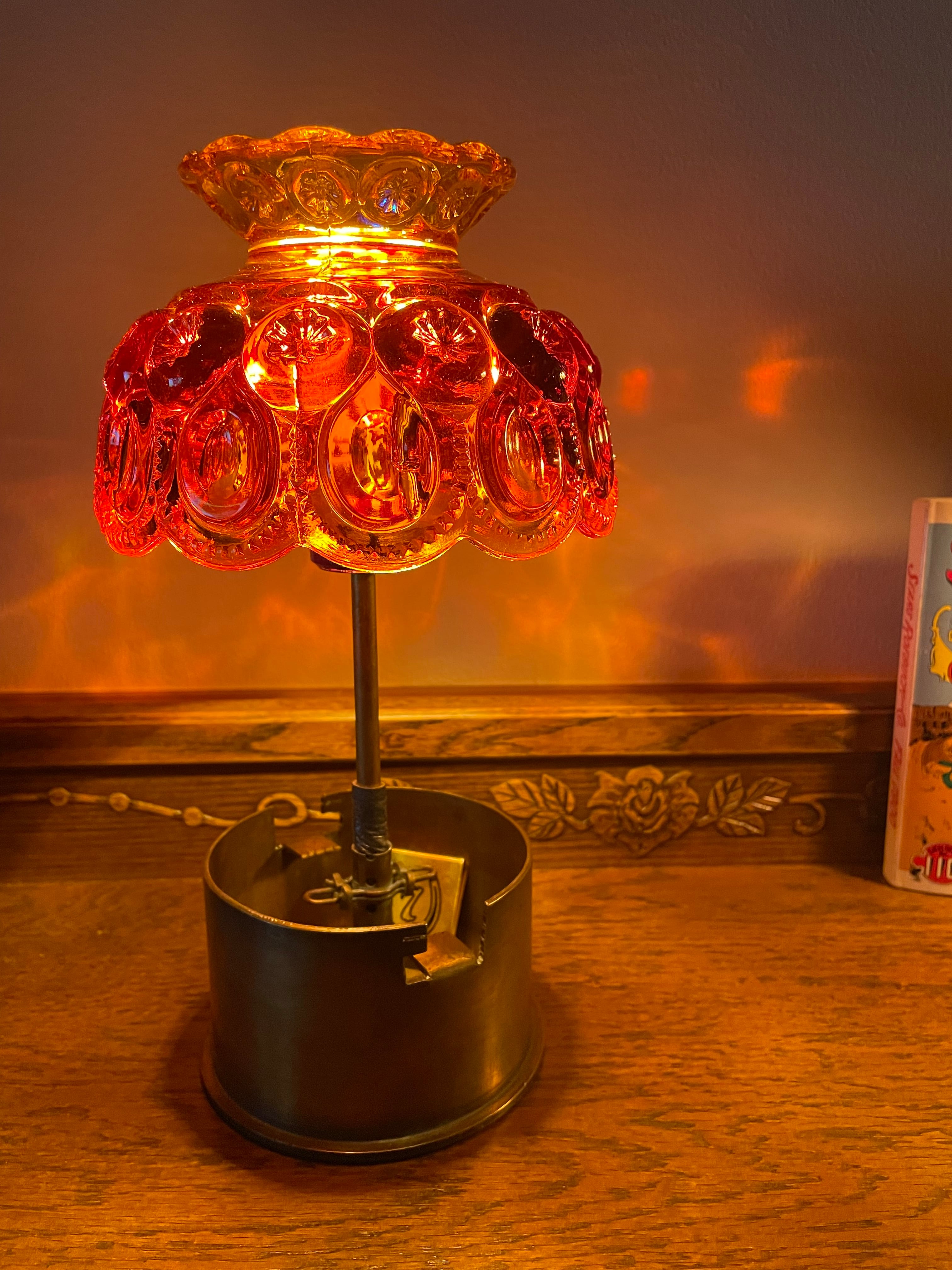 vintage Moon & Stars Glass Fairy Lamp Top Amberina