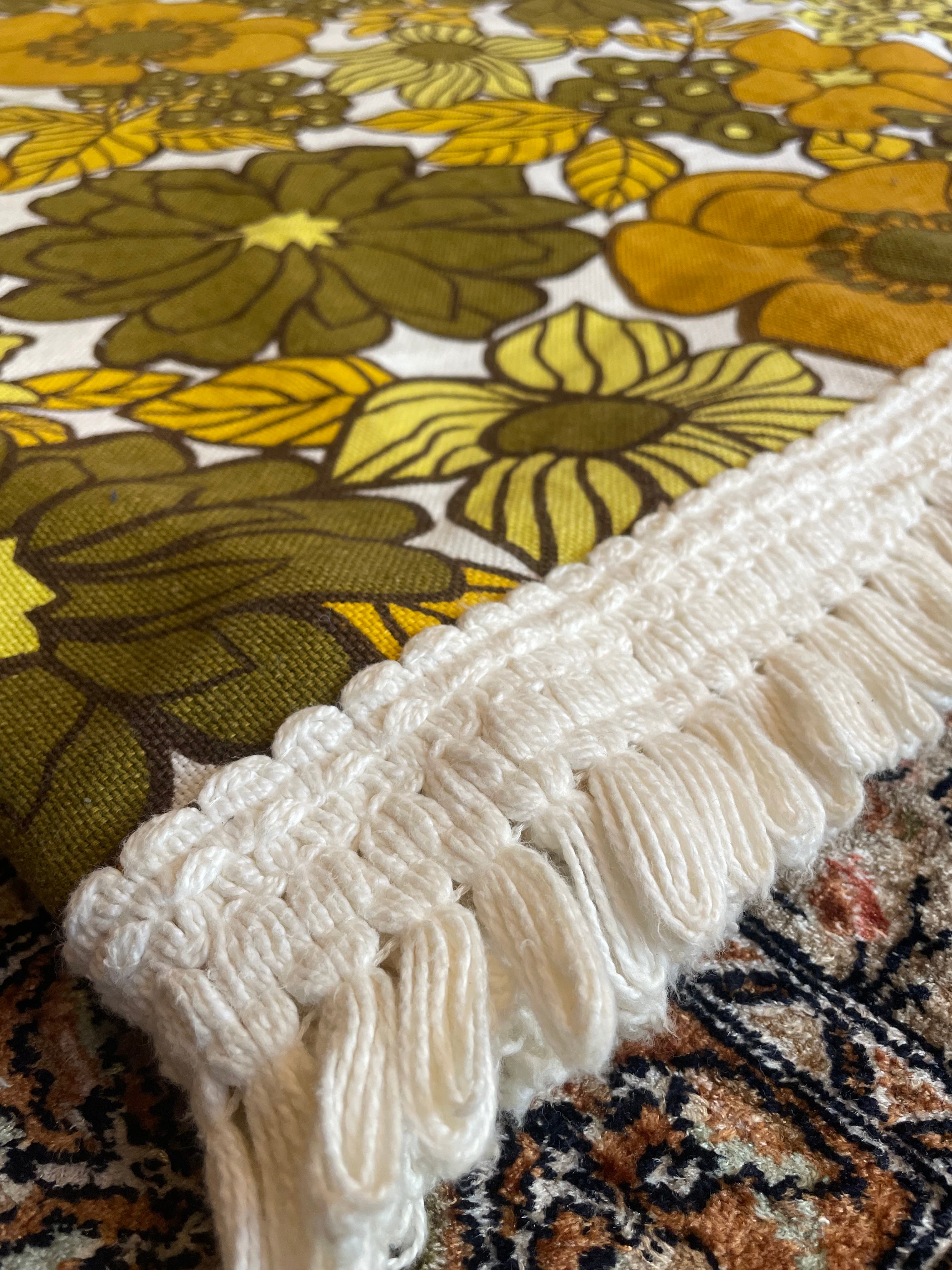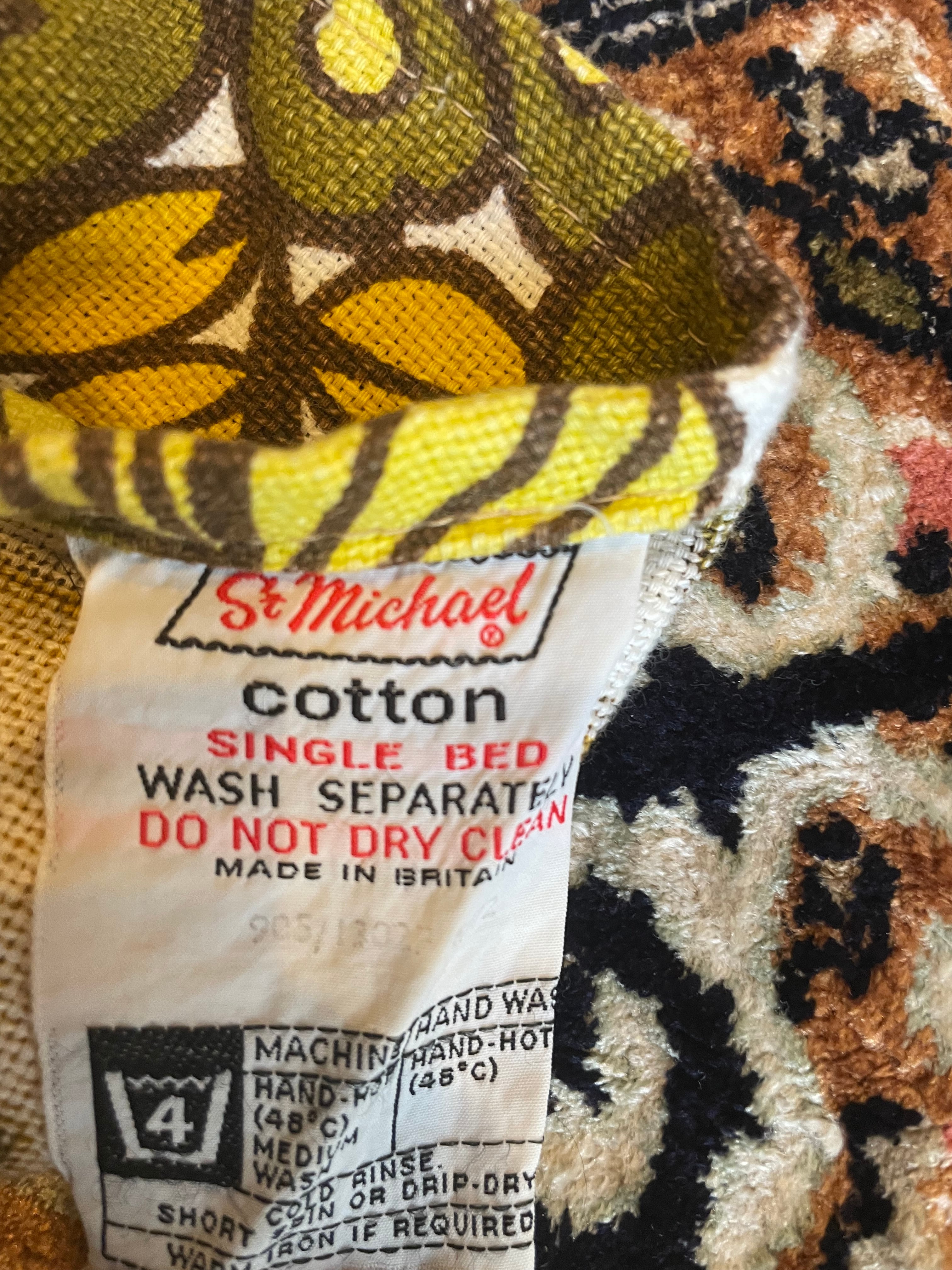 Floral Brown Mustard 1970s Retro Vintage M&S St Michael Single Bedspread Throw