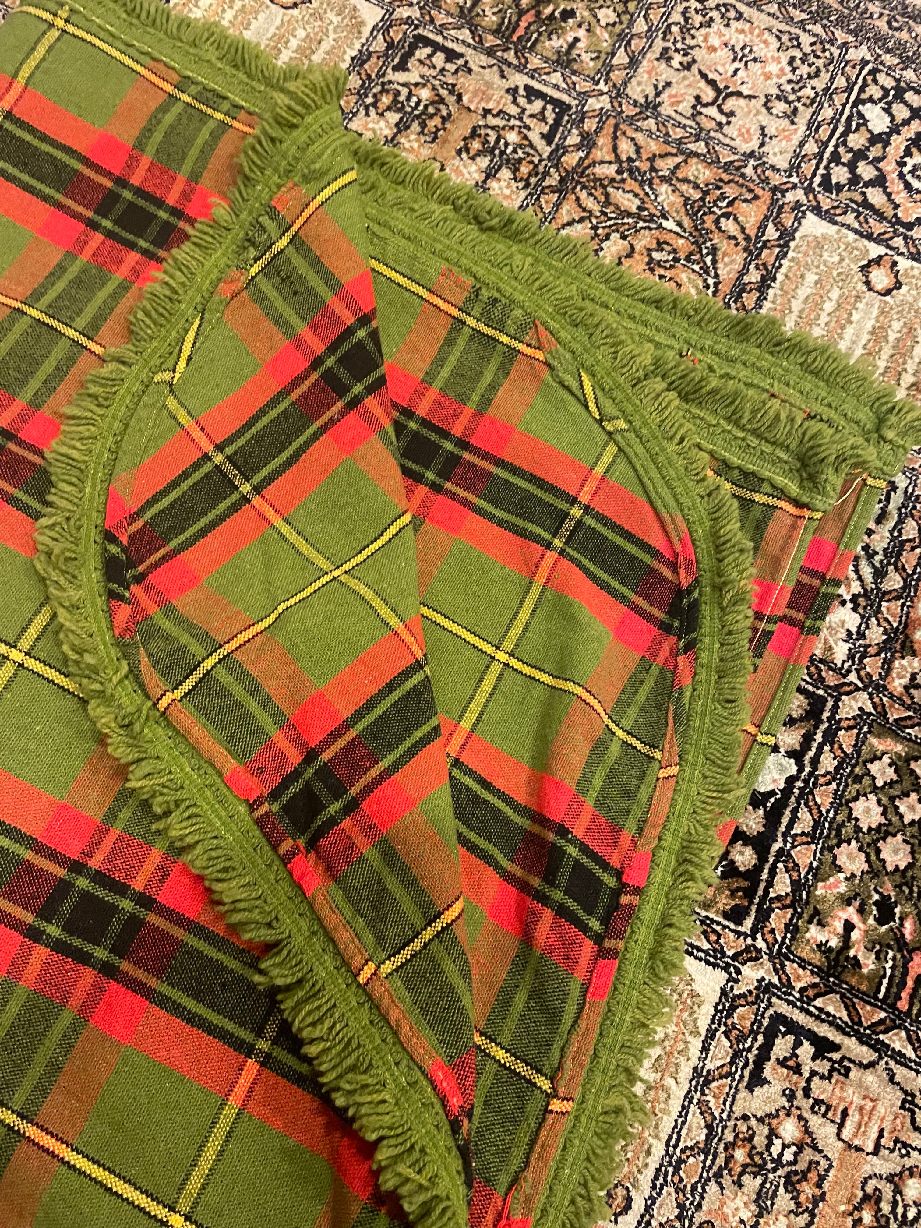 とても上質で柔らかいコットン生地のタータンチェックのフリンジ付き。80年代のものですが、ダメージはないですが、やれ感は抜群の本当の良品。