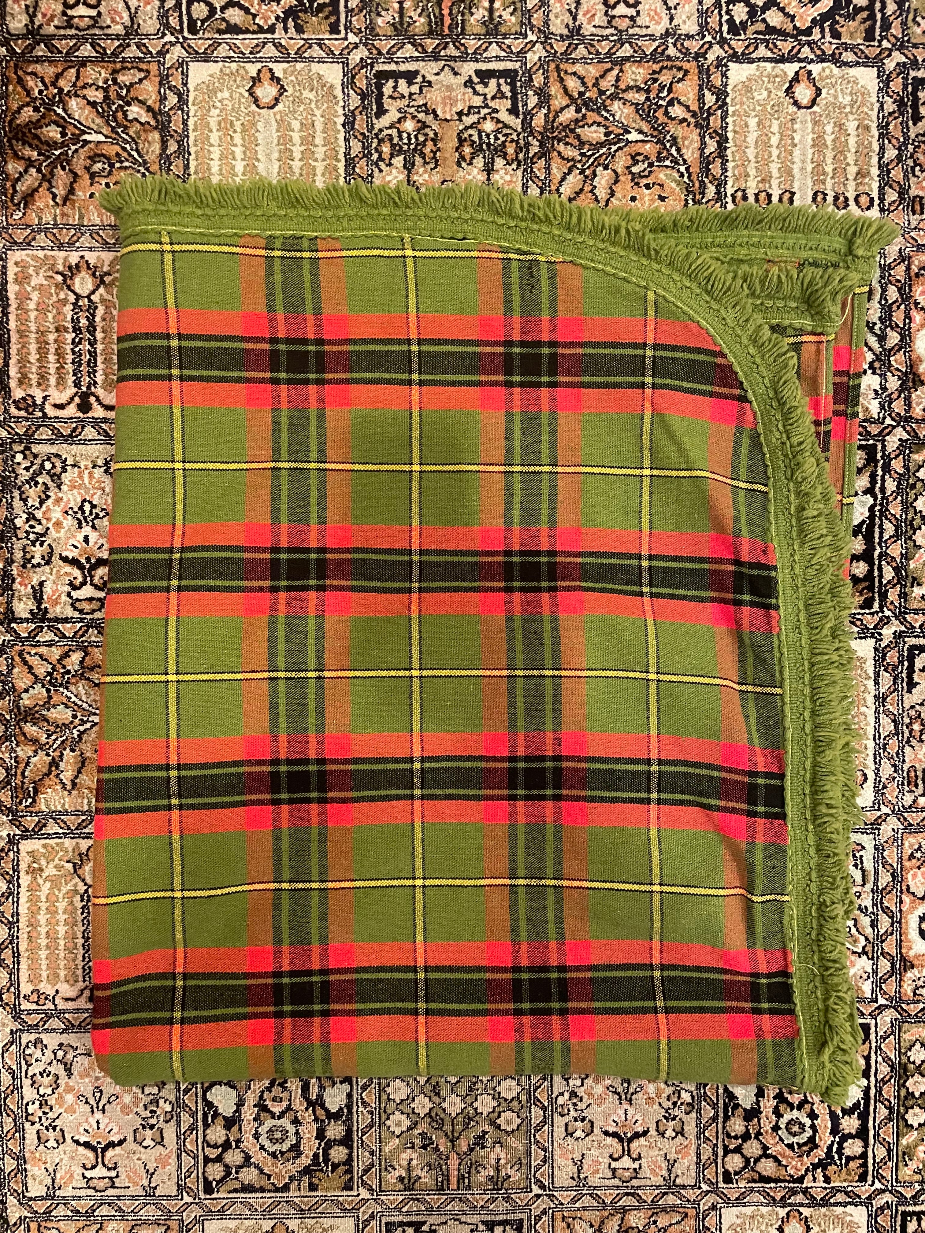 vintage bedspread tartan pattern Fringe