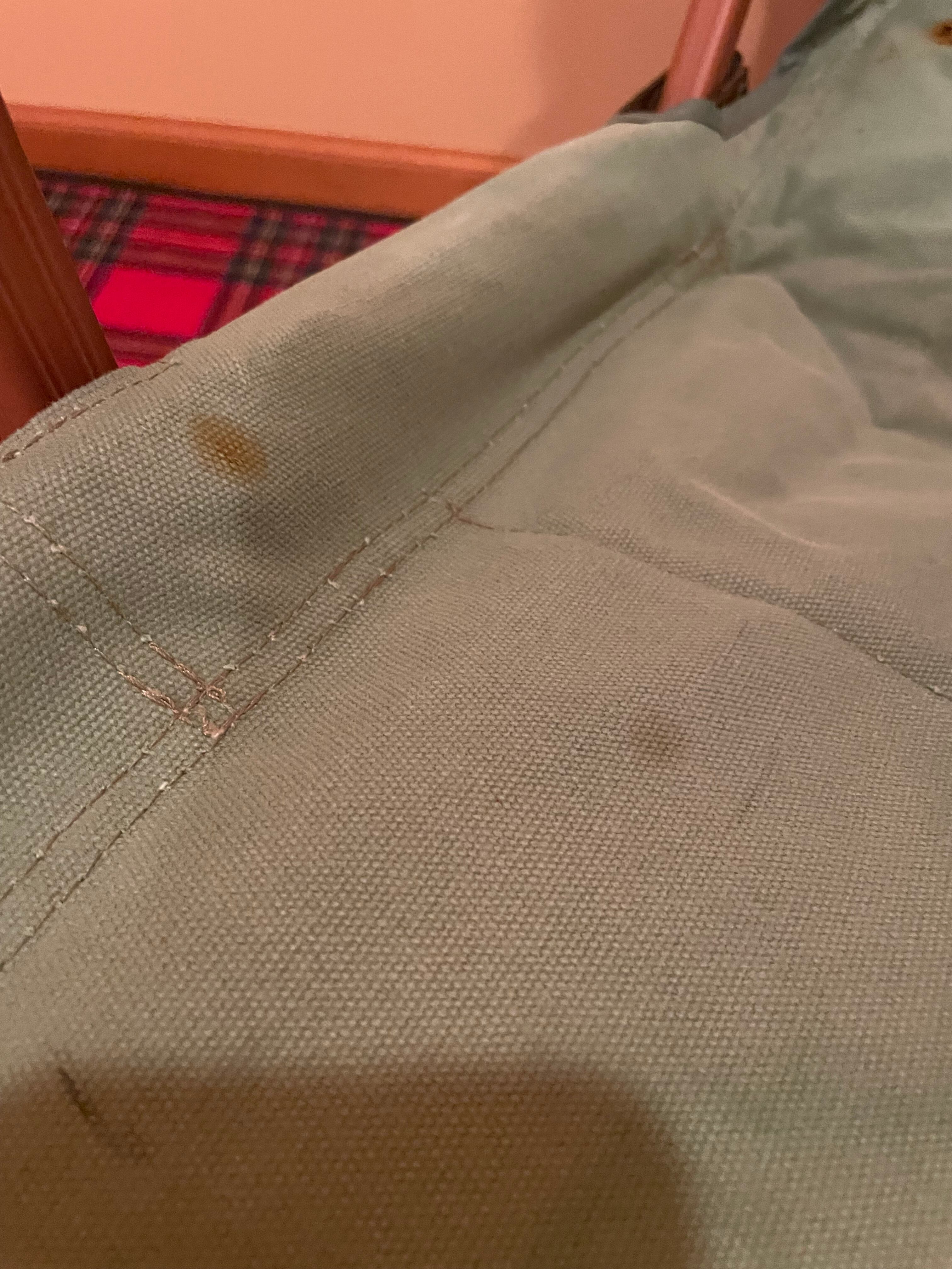 こちらのコンディションは生地の色褪せと汚れがあります。また収納袋の紐部分が切れています。そのためAよりも安価での設定です。