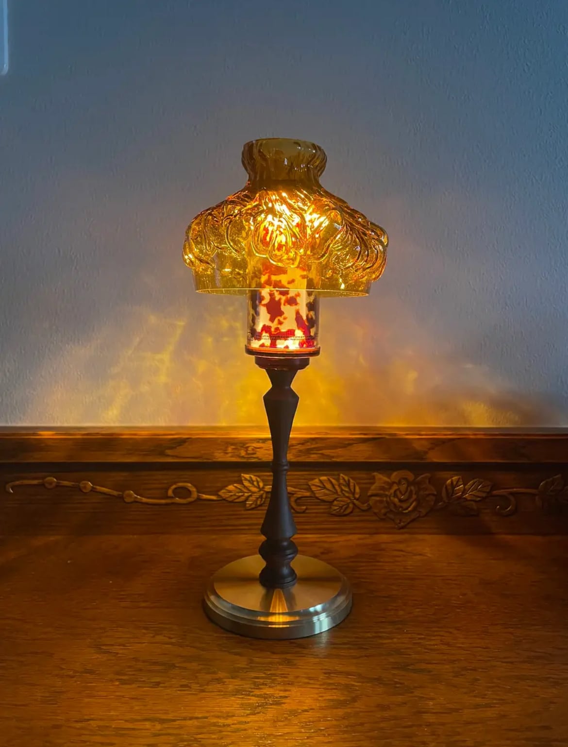 Plume pattern Miniature Oil Lamp Amber Glass Shade
