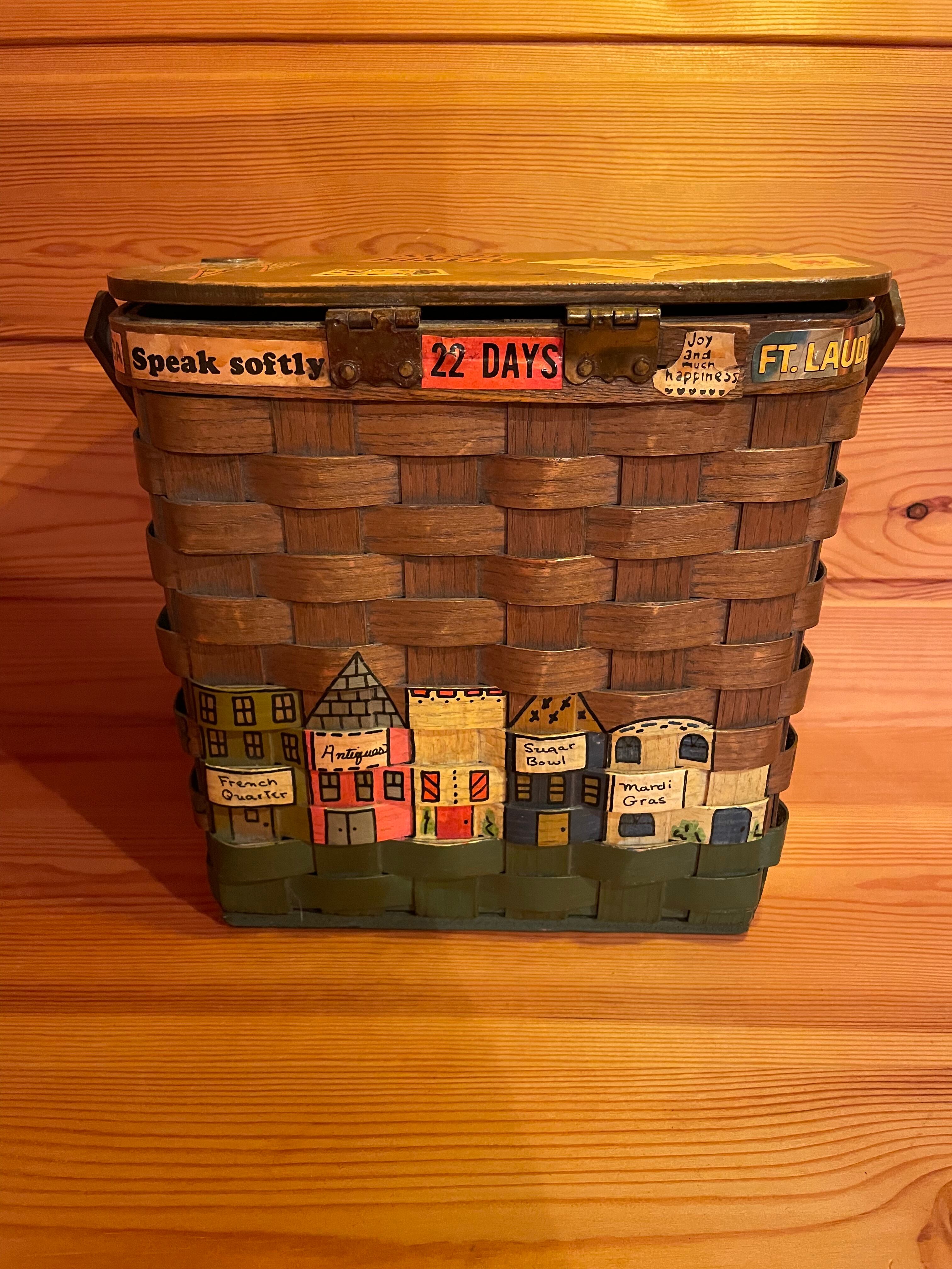 バスケットの縁に、ハワイ、マイアミビーチ、22日間のエスコート付きツアー、フランス、ジャマイカをとてもゆっくりと話しながら楽しい時間を過ごしたトラベル作品でもあります。