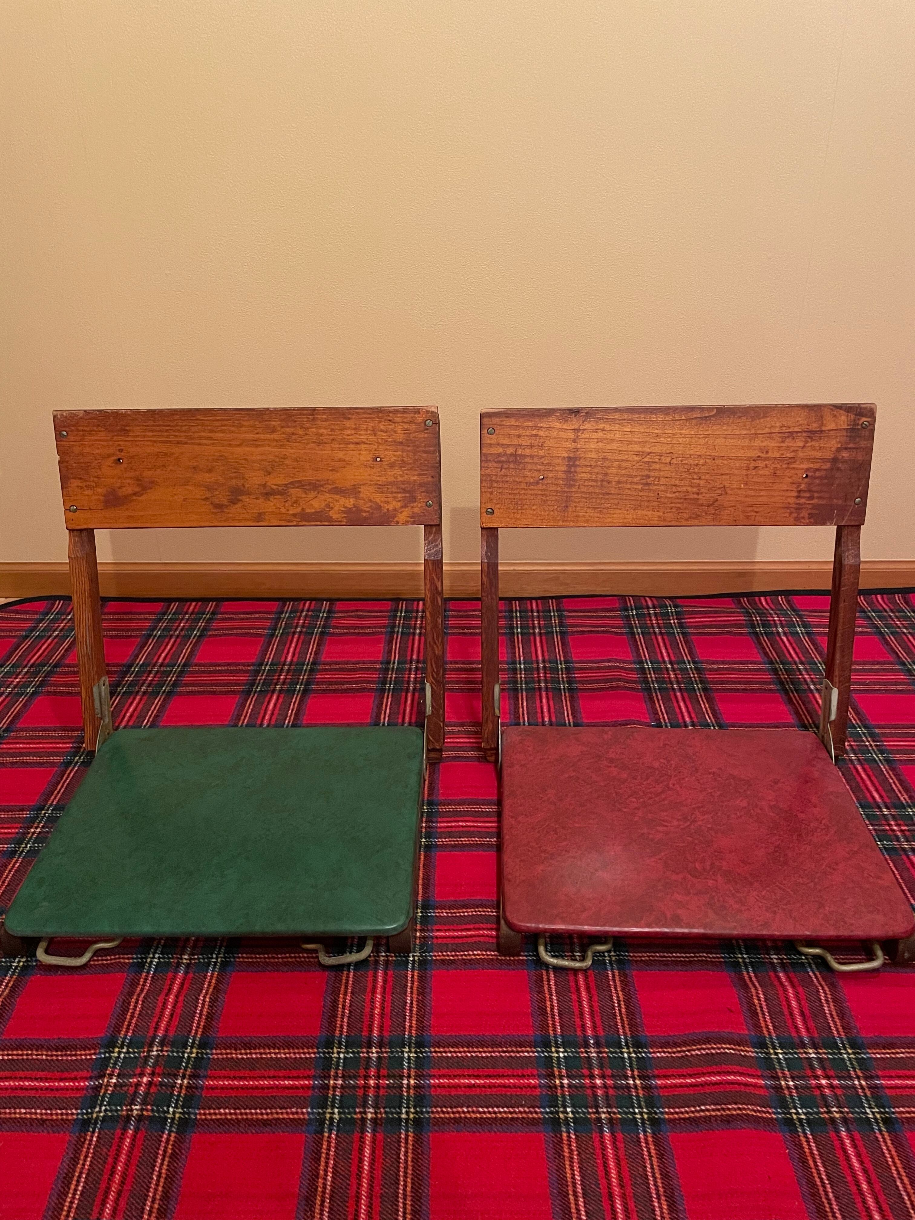 グリーン&レッドのウッドフォールディングチェアで、とても可愛らしい座椅子です。