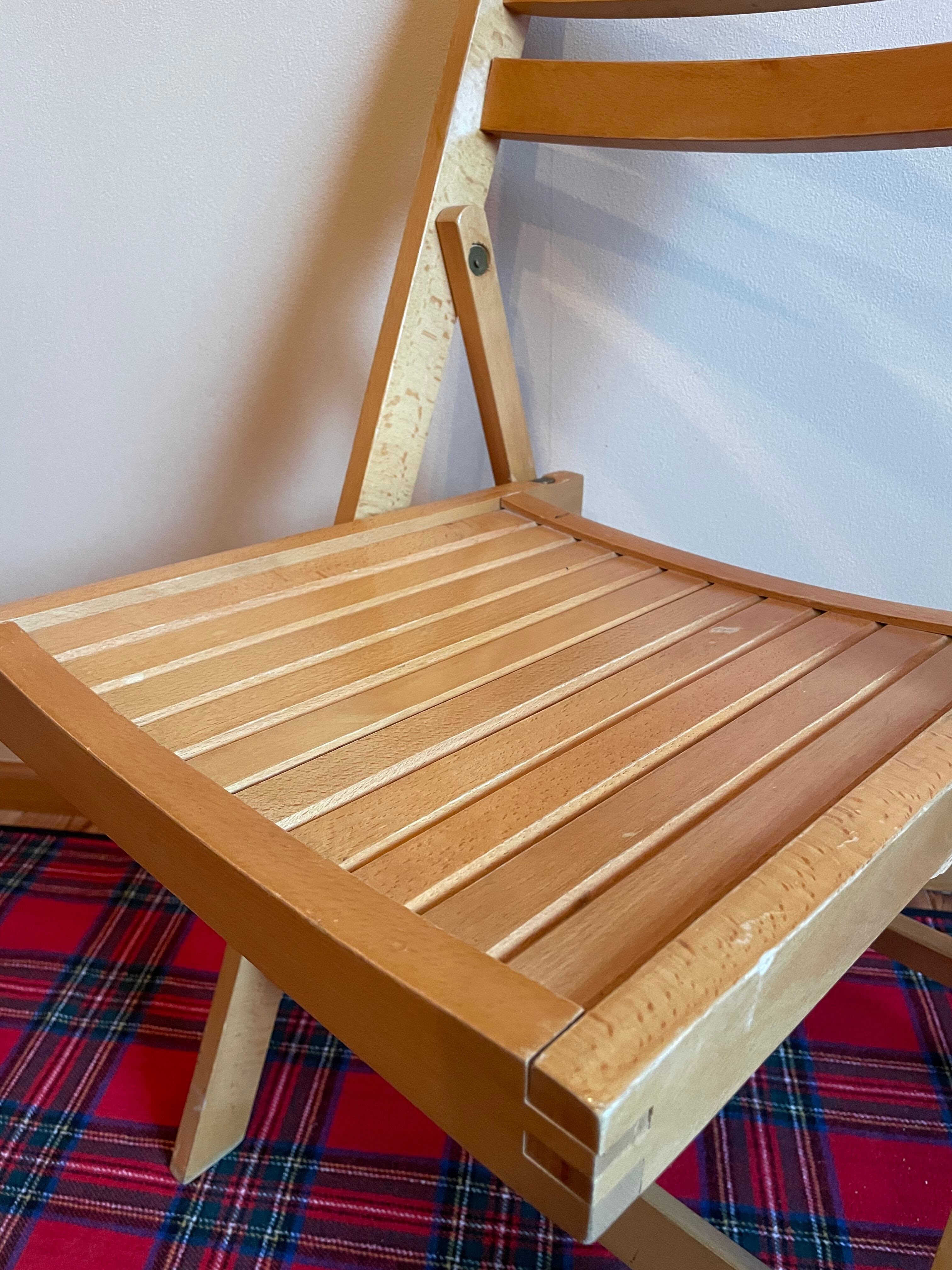 フォールディング機能もばっちりで簡単に畳めます。材質の木材が堅牢なためガシガシと使えるコンディションです。