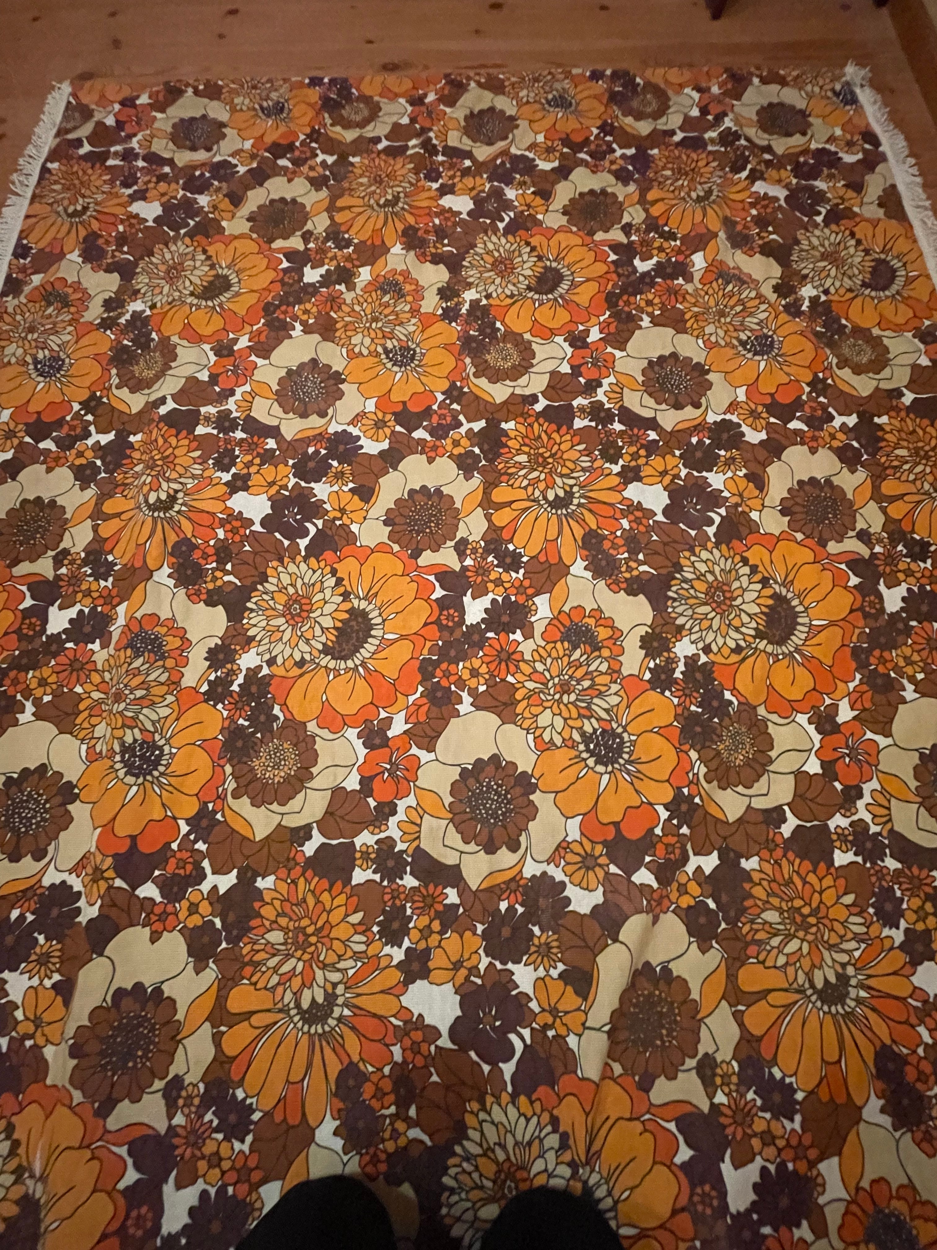イギリスから1970年代のビンテージで、フラワー柄大判ブランケットです。