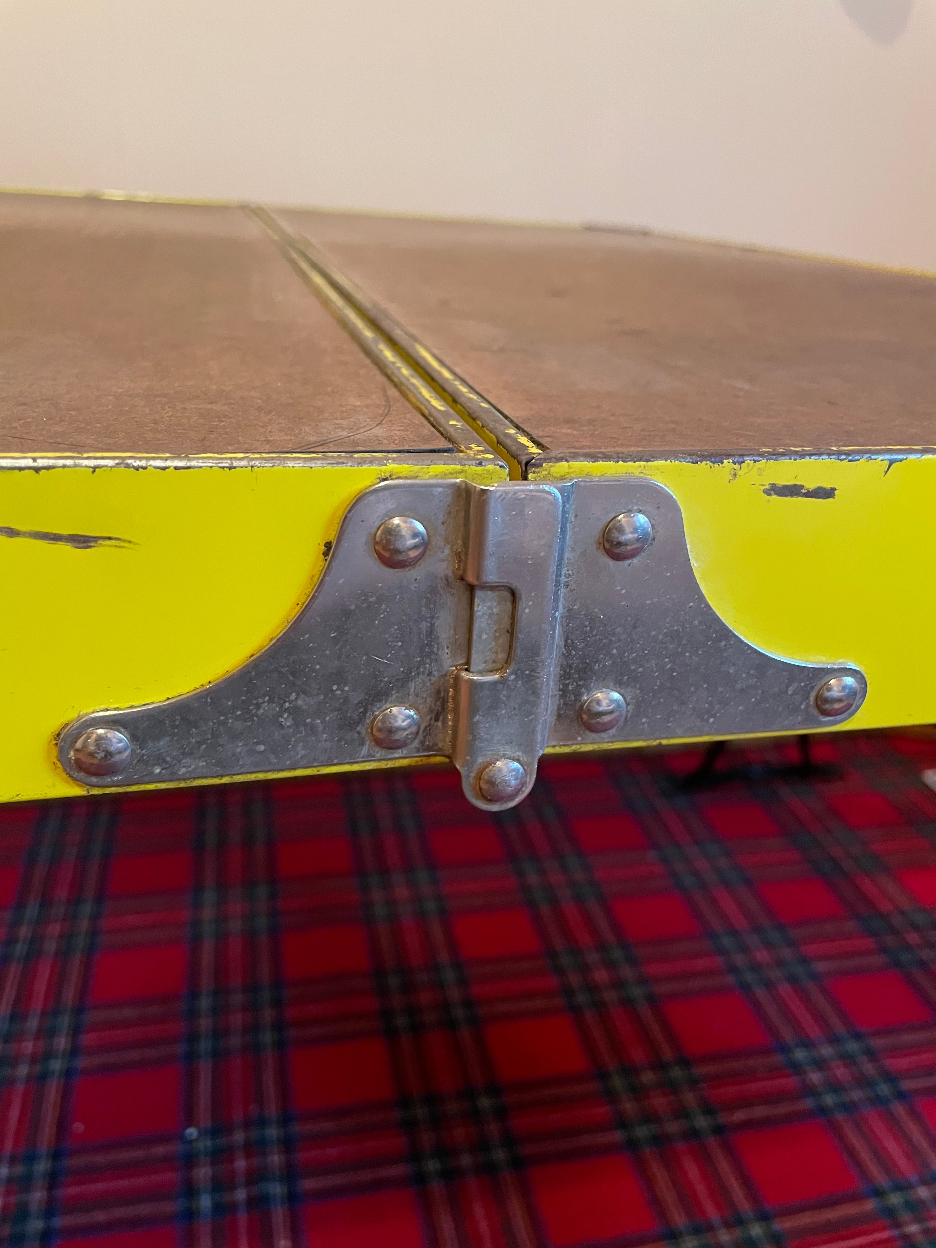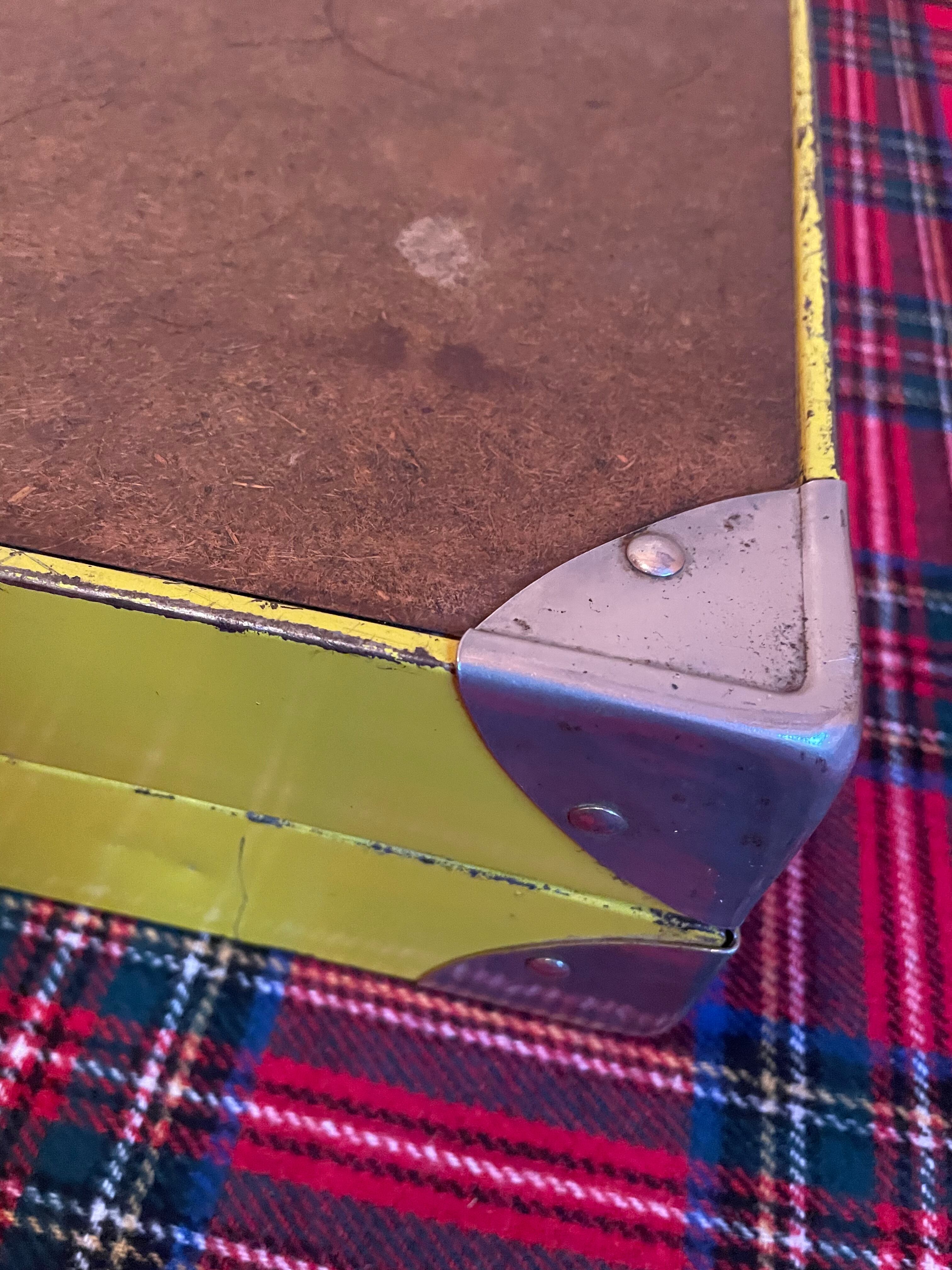 永遠に使えるものを作っていた時代の堅牢さが売りのテーブル。ビンテージなイエローがオールドアメリカンな雰囲気の良さを醸しています。