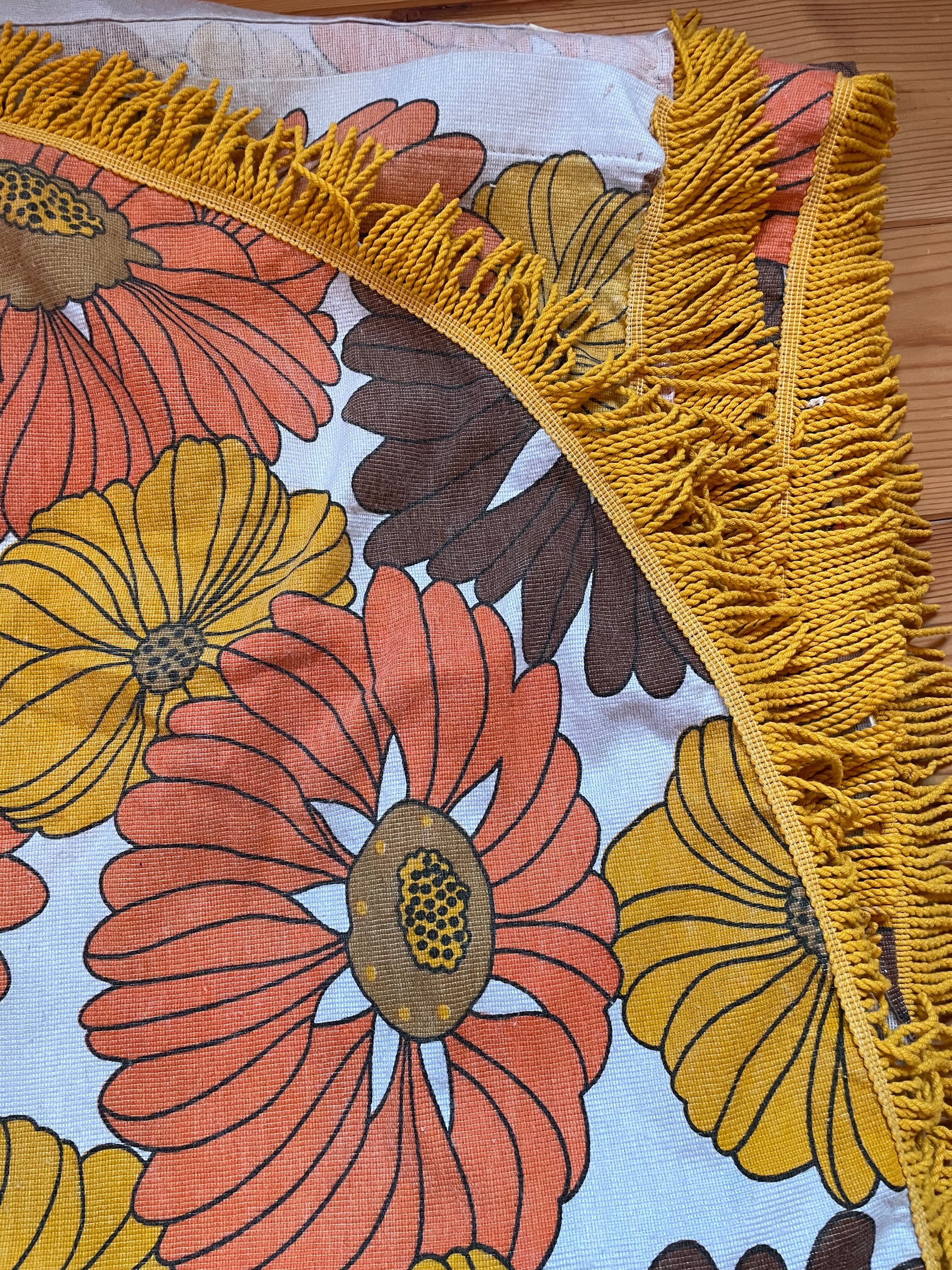 大柄の花模様でイエローフリンジが特徴的なブランケットです。awesomeでこれまで取り扱った同種ブランケットでは最大サイズです。