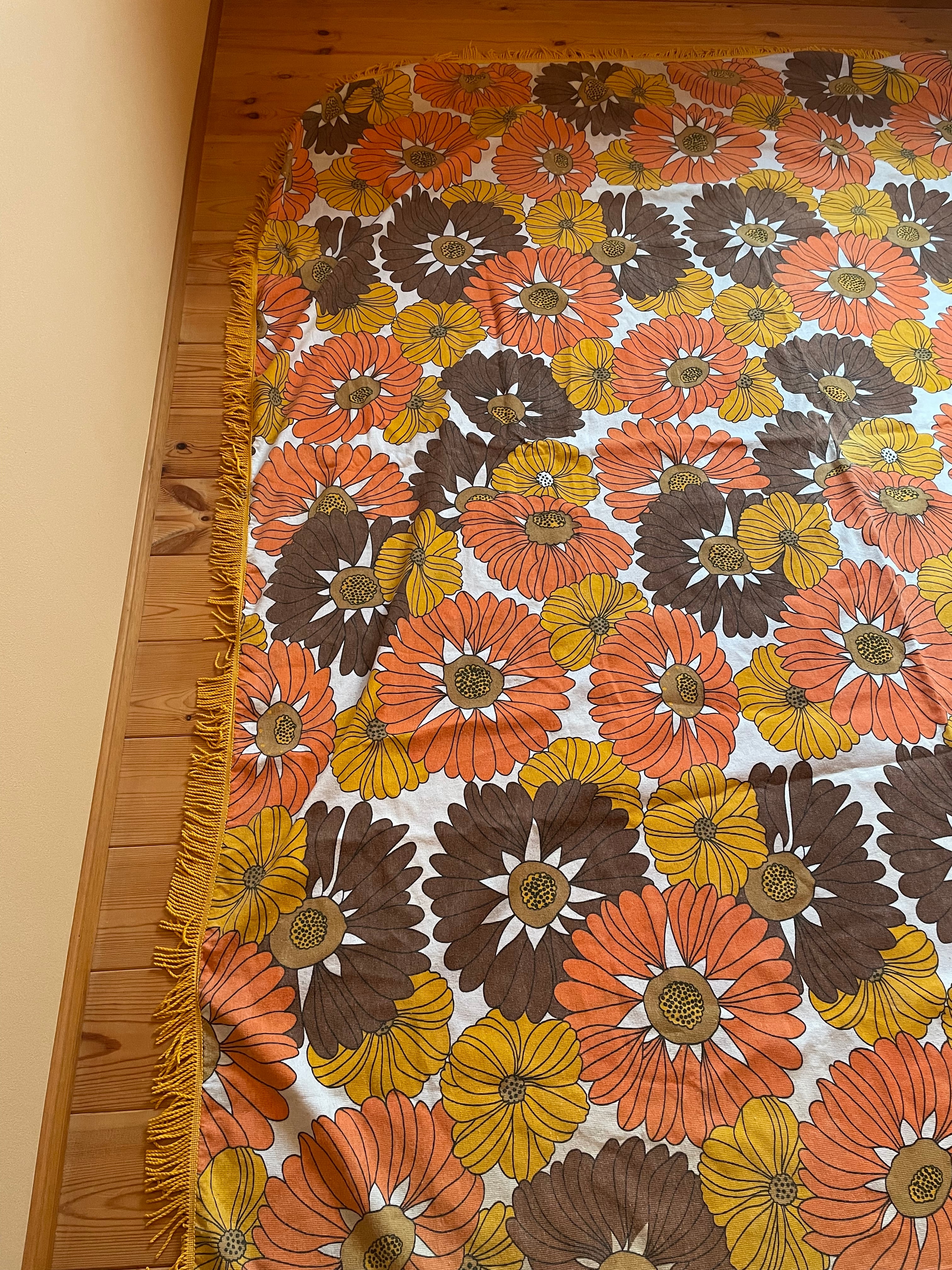 AS-IS 1970s yellow /brown /orange flower large blanket