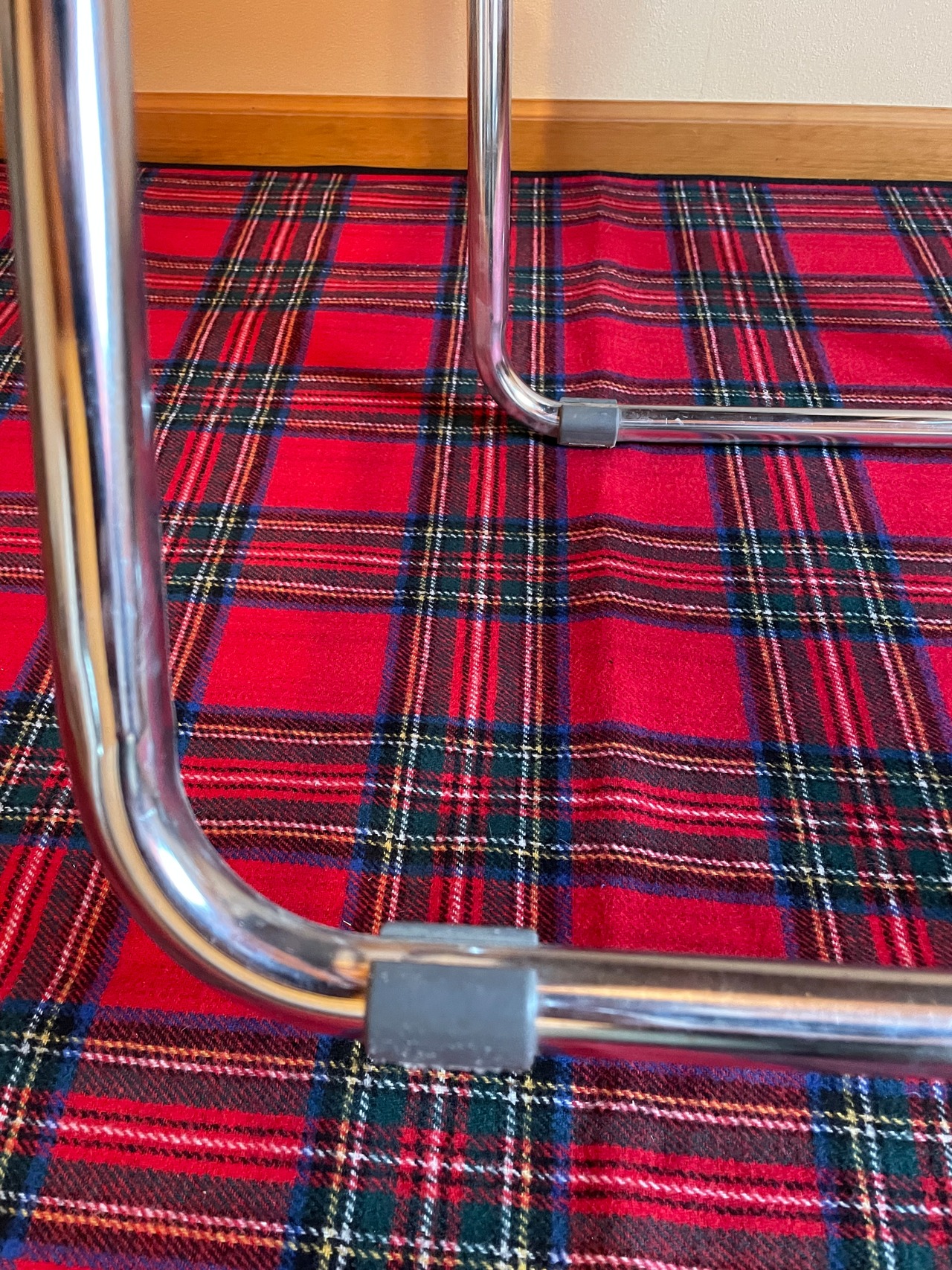 一方、こちらのチェアのウィークポイントは一箇所パイプのエンド部分のキャップが破損しています。(写真を5枚目をご確認ください)