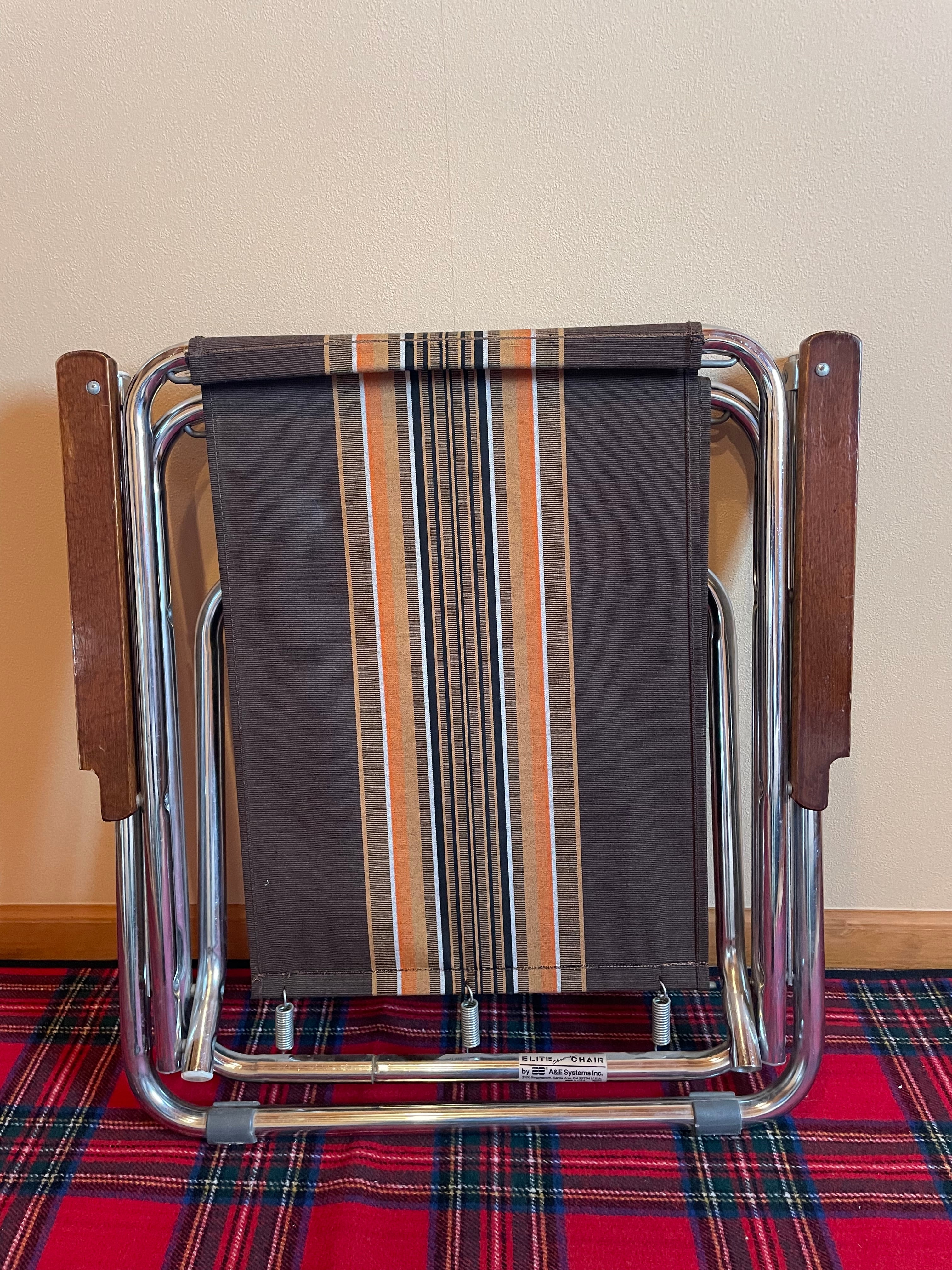 AS-IS A&E Systems BrownStriped folding LawnChair(Zipdee)