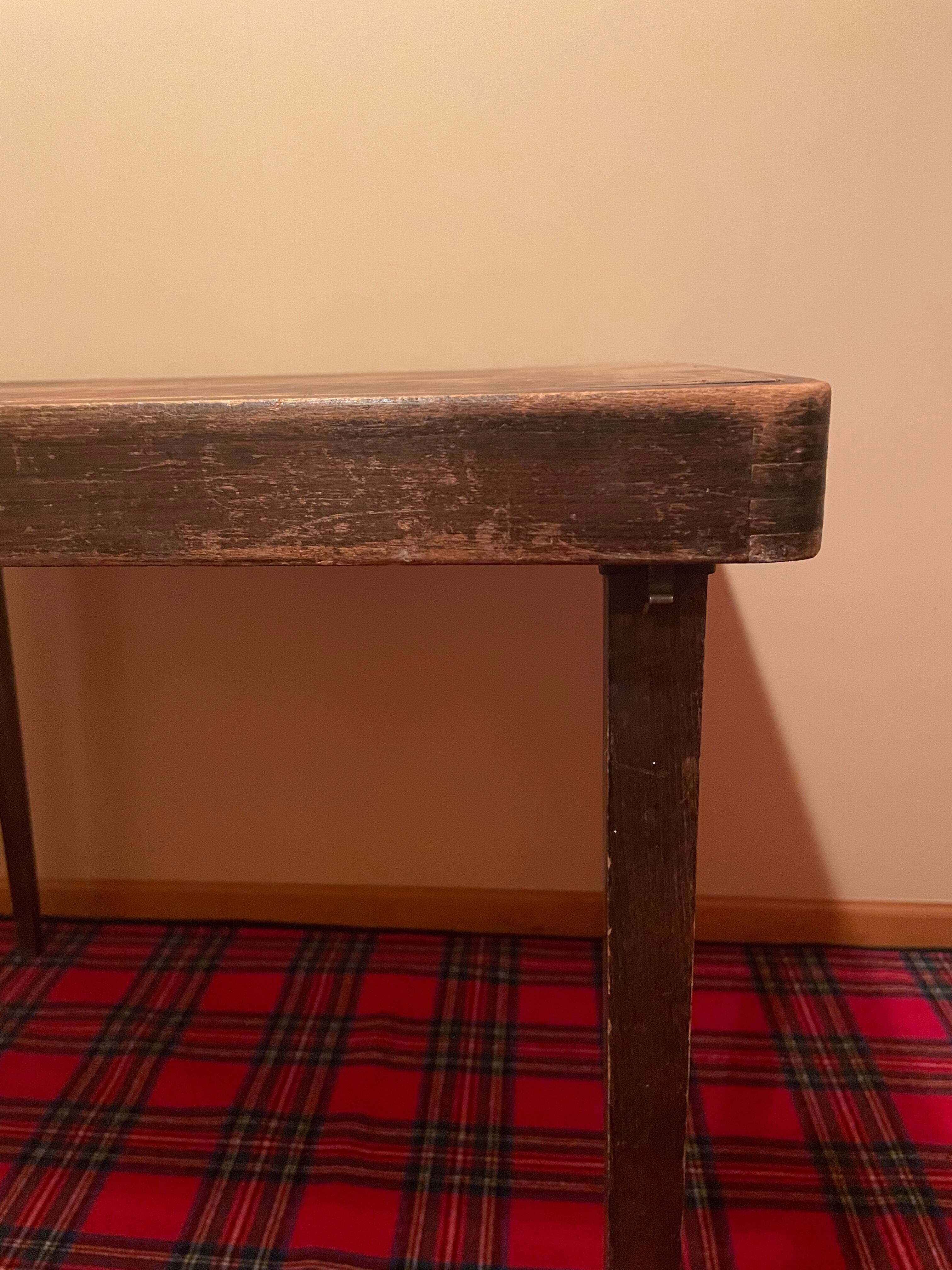 全体的にウォルナットに近い色味でやれ感もあり、なかなか雰囲気の良いビンテージテーブルです。