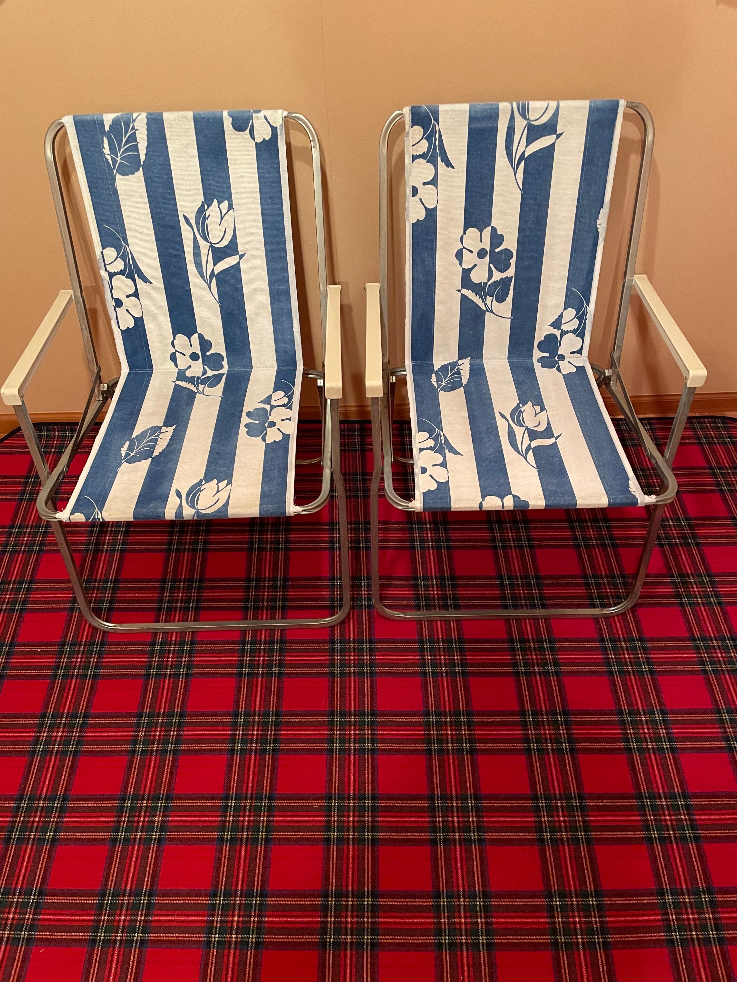 Vintage Retro Multicoloured Striped Metal Folding Garden Deck Chairs