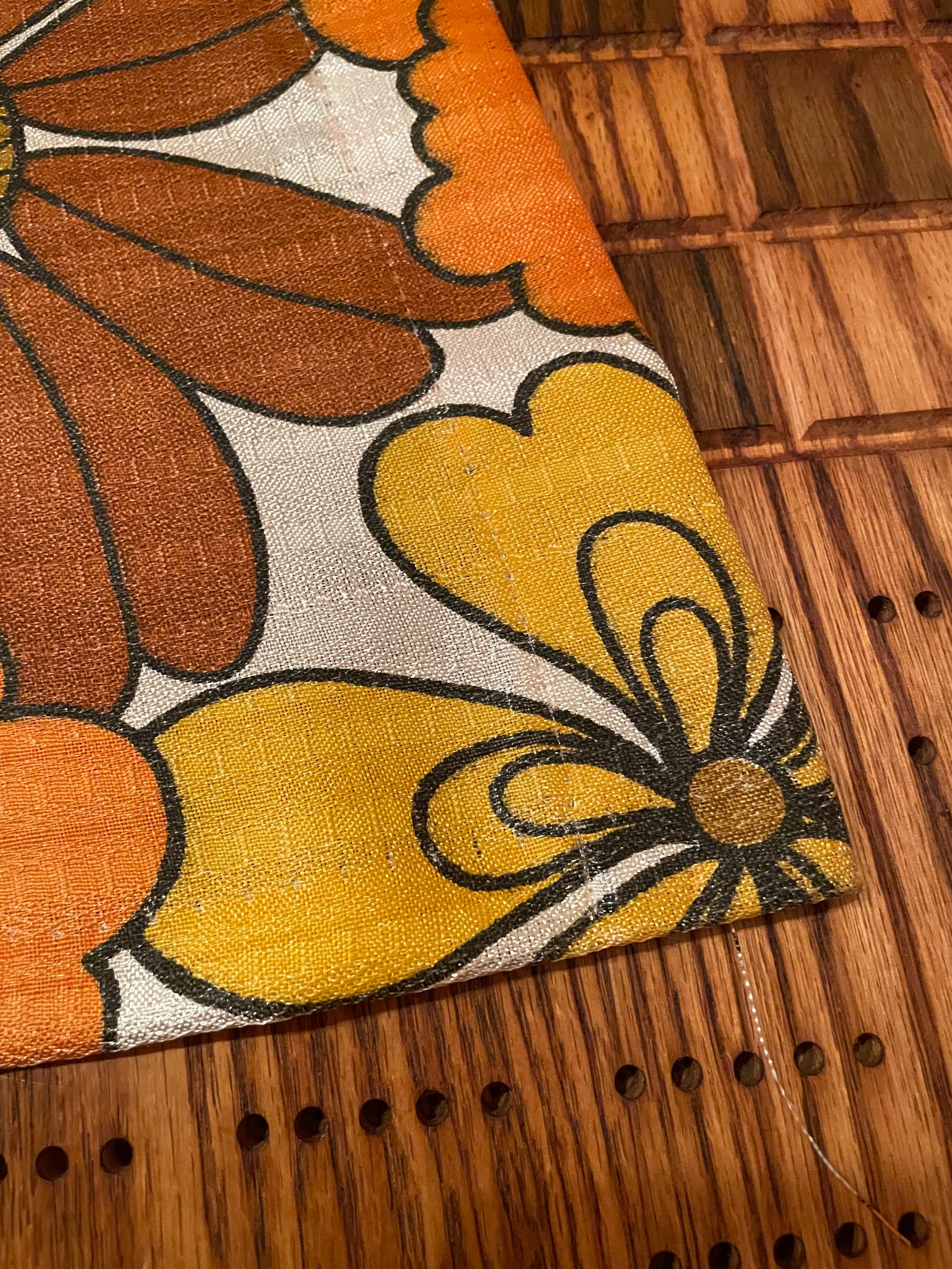 Vintage Retro MCM curtains fibreglass 70s orange flowers mid century modern