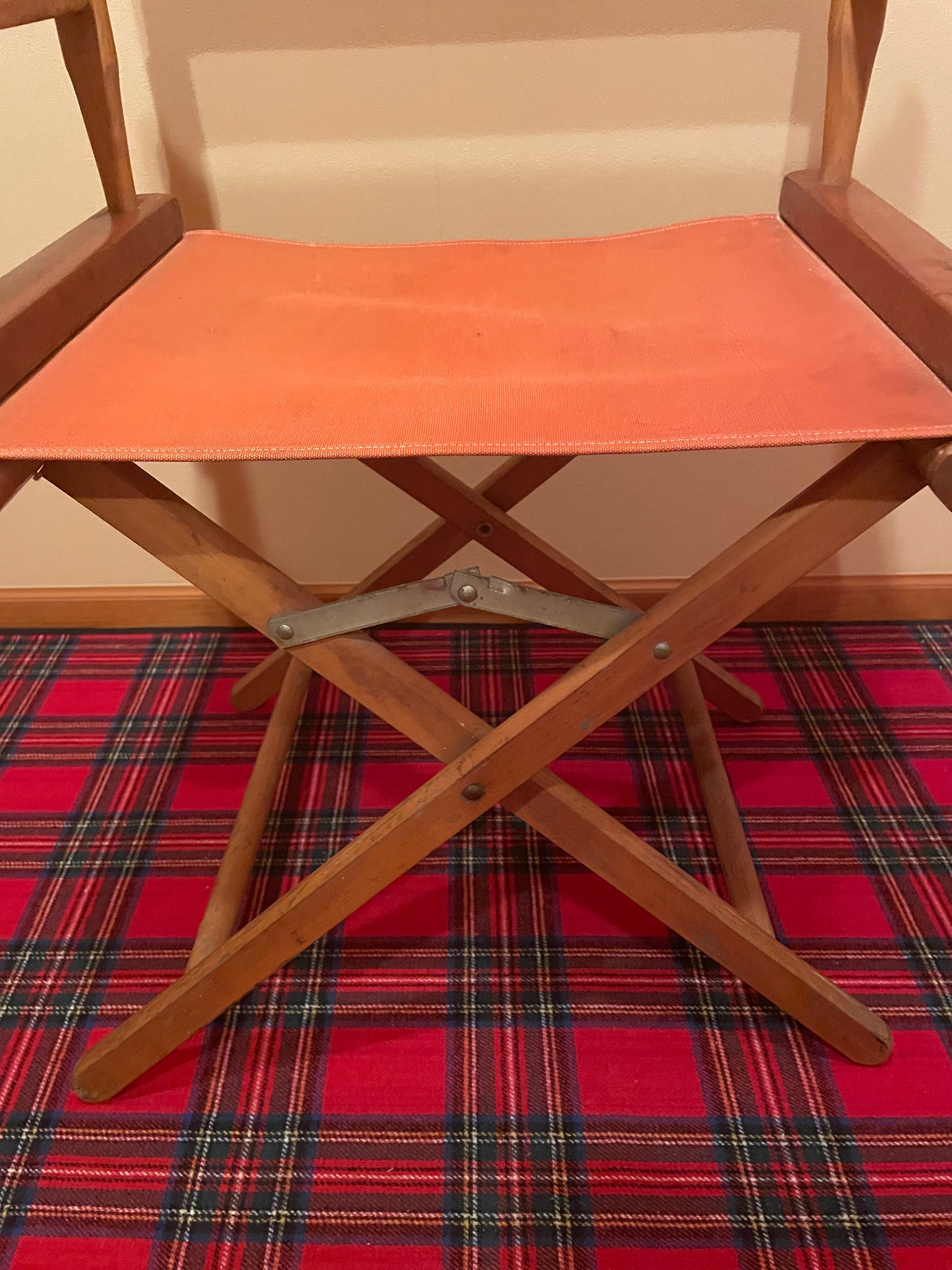 いい雰囲気にヤレ感がありますが、しっかりとした座り心地です。折りたたんで持ち運びができ、簡単に設置できるチェアです。