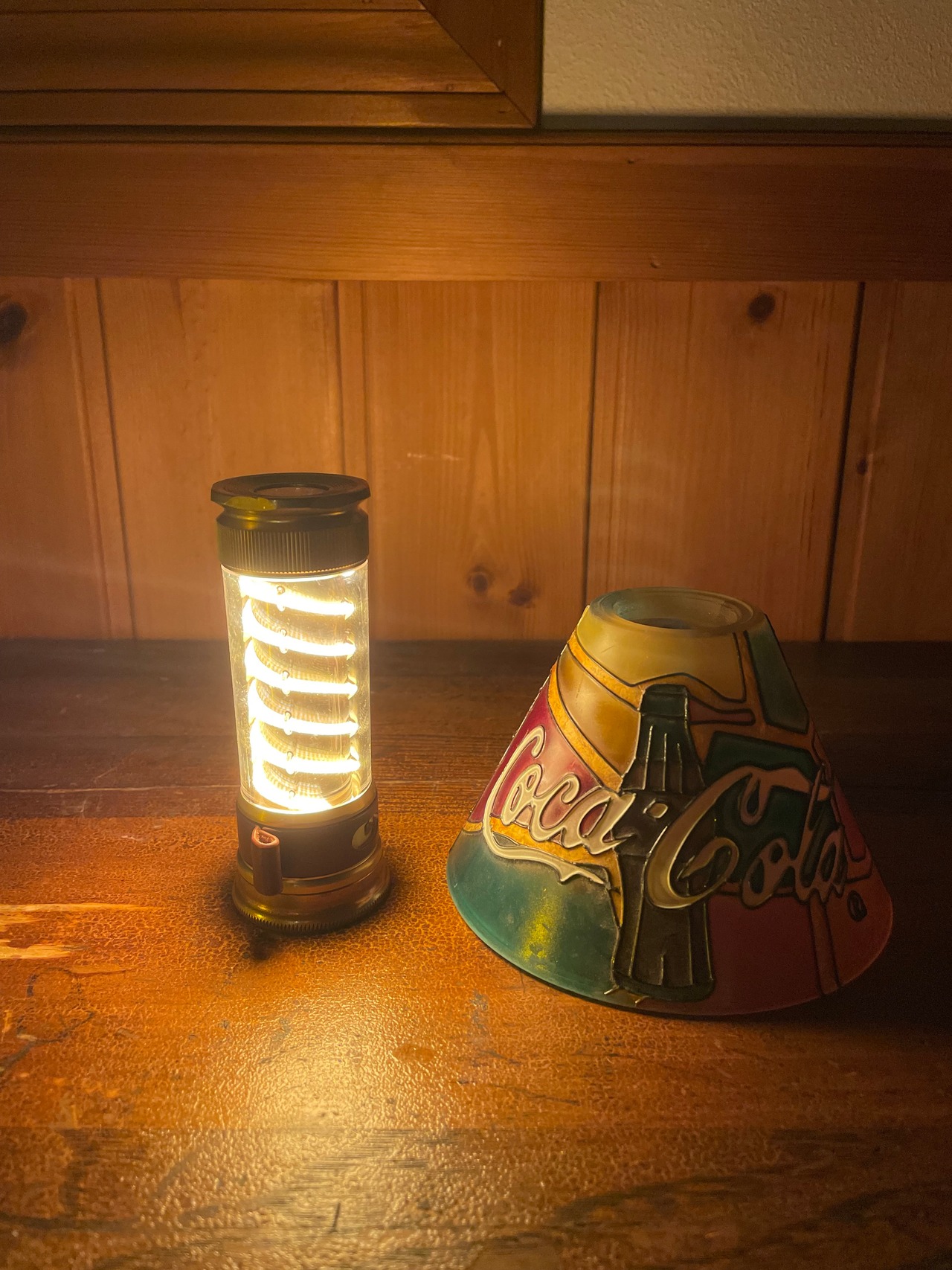 コカ・コーラデザインのシェードは数多くありますが、こちらは小ぶりなサイズのシェードでもともとはキャンドルシェードとして作られたもの。