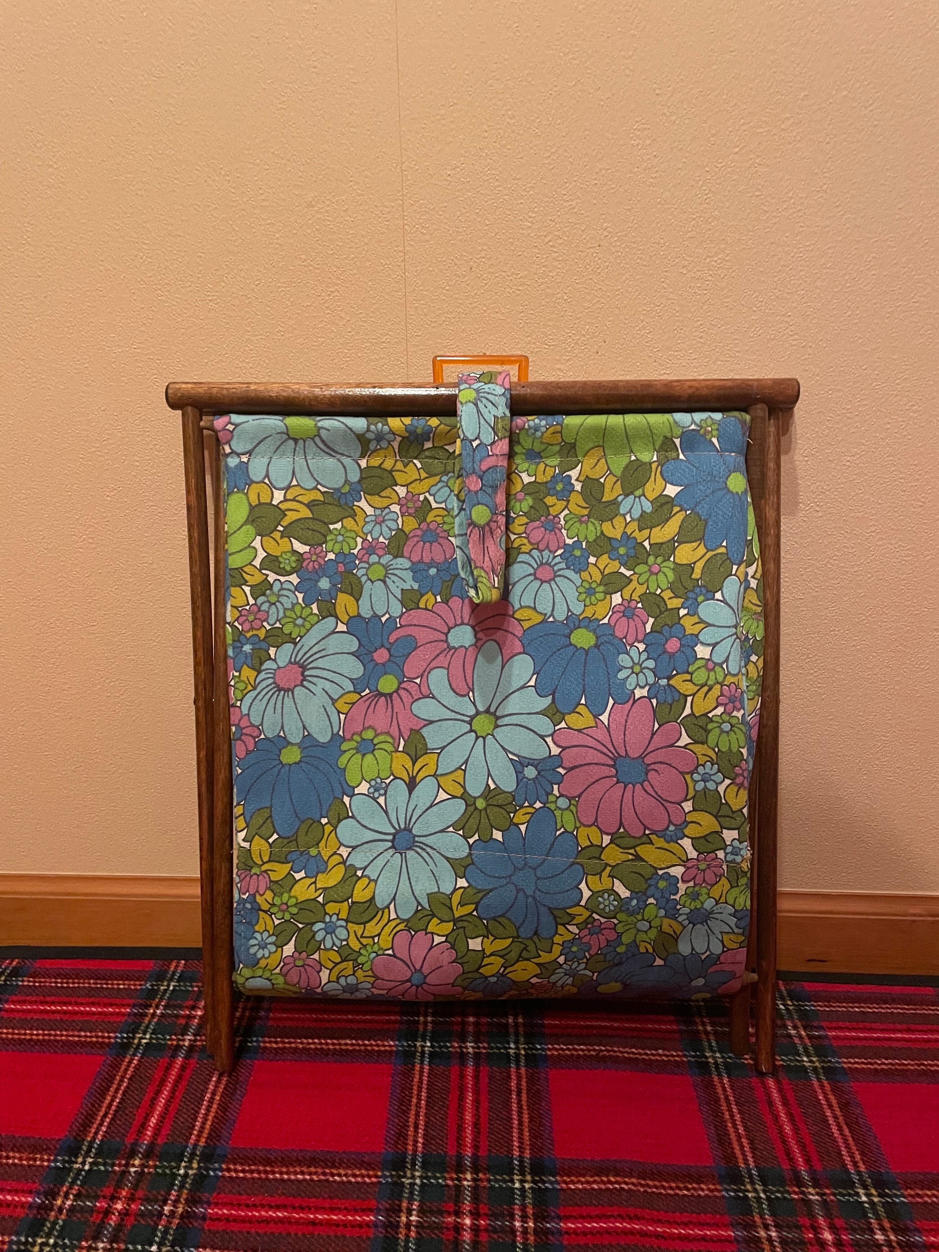 Vintage Knitting Sewing Craft Yarn Caddy Basket Bag Folding Wood Frame Handle