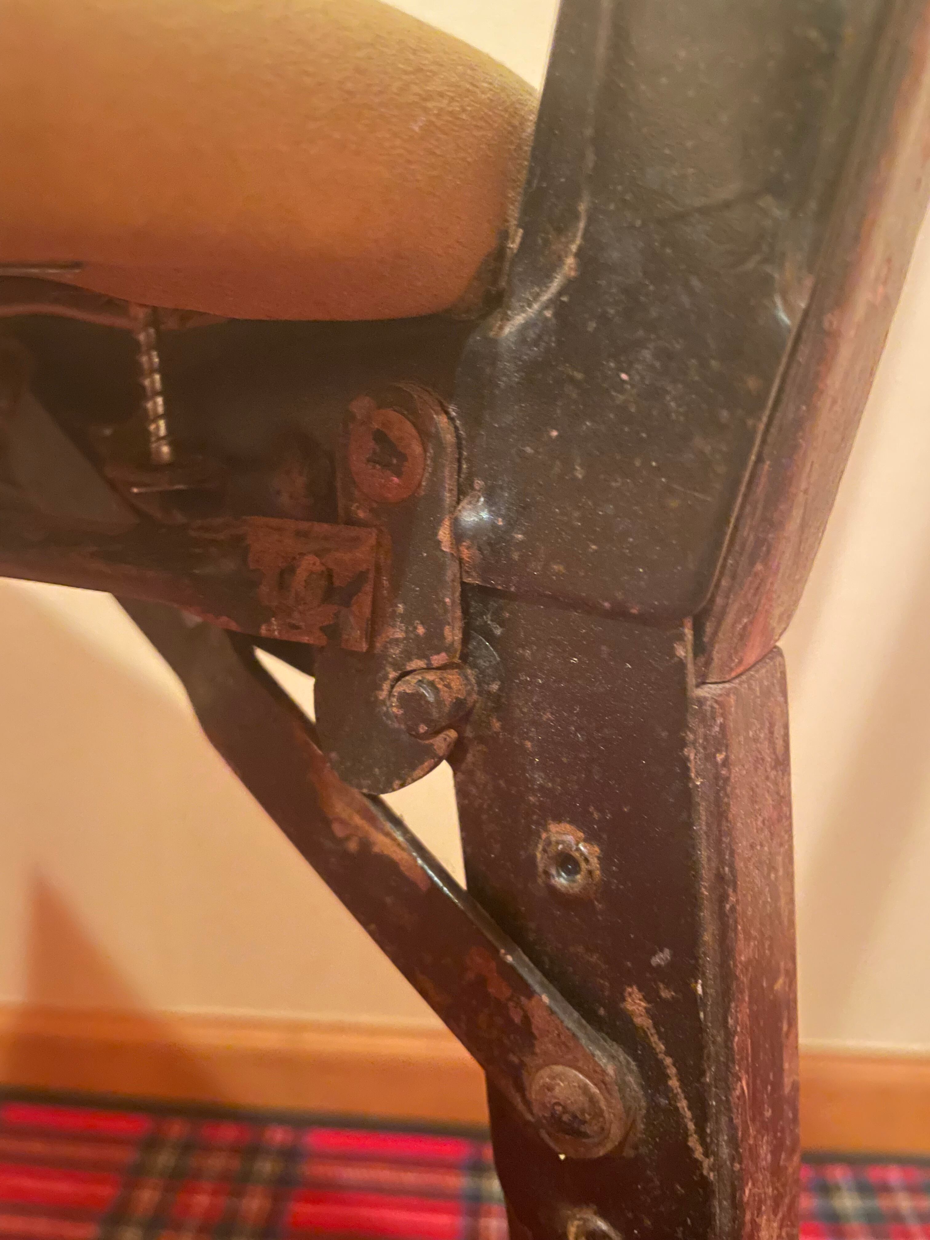 とても堅牢な作りは健在で、ぐらつきはありません。シートはスウェード素材に張り替えられています。しっかりした素材ですので張り替えの必要はありませんが、こちらもお好みで張り替え可能です。
