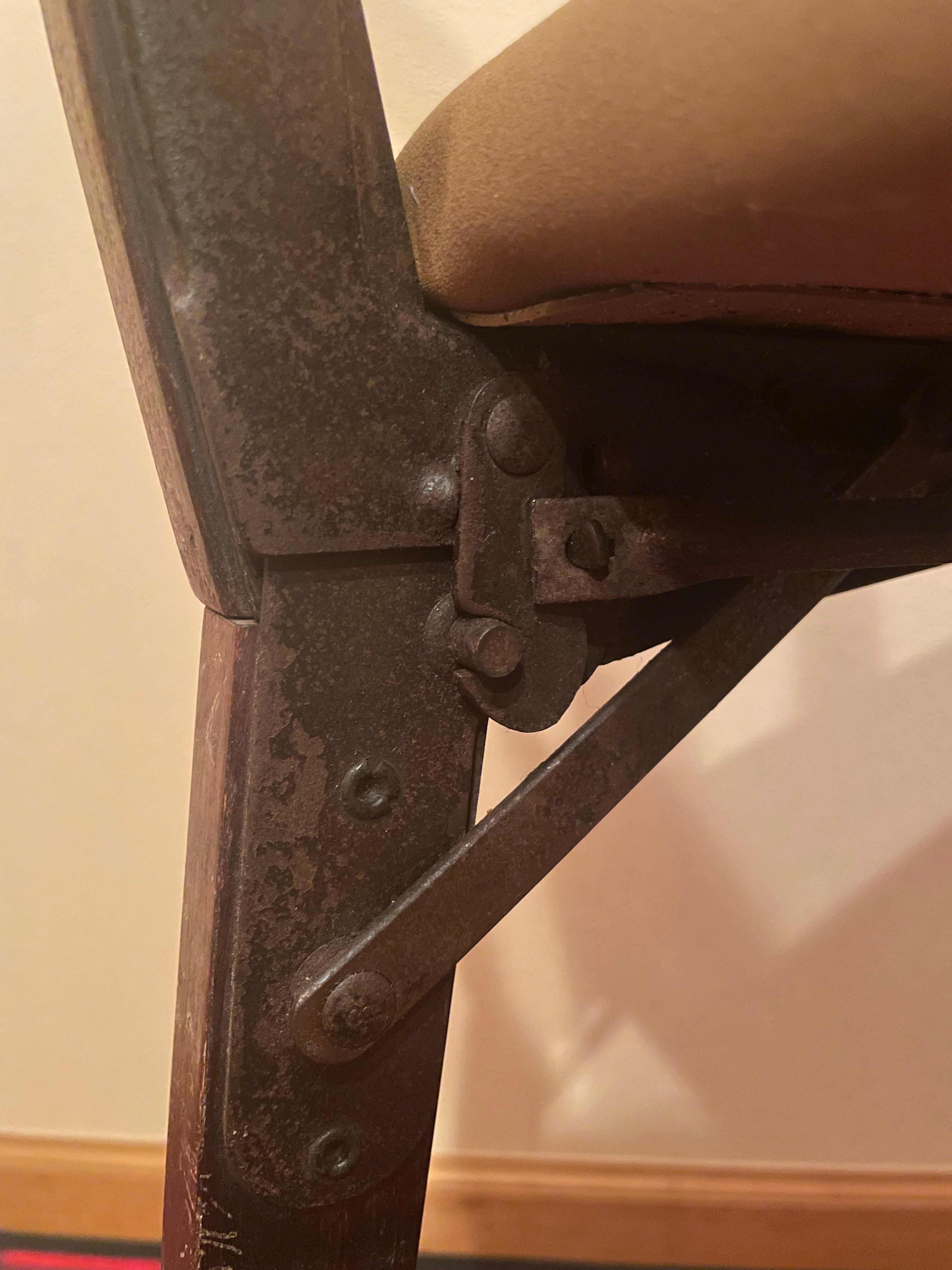 とても堅牢な作りは健在で、ぐらつきはありません。シートはスウェード素材に張り替えられています。しっかりした素材ですので張り替えの必要はありませんが、こちらもお好みで張り替え可能です。